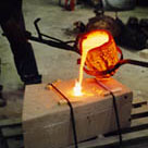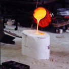 Bronze is then melted to 2050° F and poured into the sand mold.