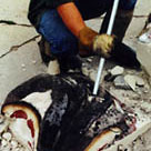 After the entire statue is cast in plaster, the mold sections are removed from the statue and the clay is then put back into the clay containers for future use.