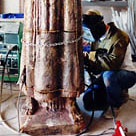 Pouring sprues, vents, and risers are cut off of all of the castings, metal flashings on the edges are ground off and the castings are welded together.