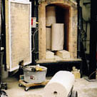 Using the traditional solid investment process, the wax patterns are invested in refractory material then put into a burnout kiln where they are fired at 1000° F for two days.